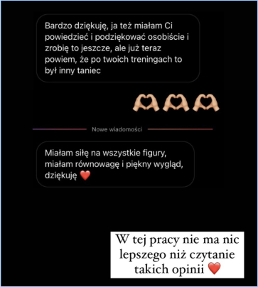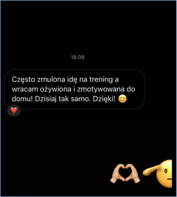 Praca z Natalią to czysta frajda! Natalia ma niesamowity zmysł do dobierania ćwiczeń, które się nigdy nie nudzą. Plus jej motywujący vibe sprawia, że nawet najcięższy trening mija w mgnieniu oka i zawsze wychodzę naładowana pozytywną energią!